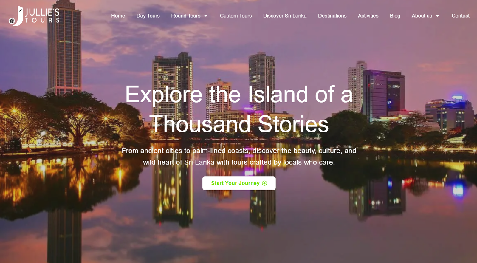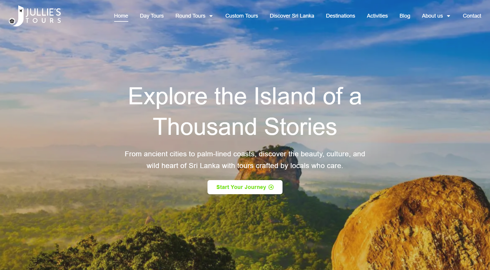 Jullie’s Tours creates customised travel experiences throughout Sri Lanka, from scenic routes to curated adventures. They needed a website that captures the spirit of travel while guiding visitors through tours and itineraries with ease.