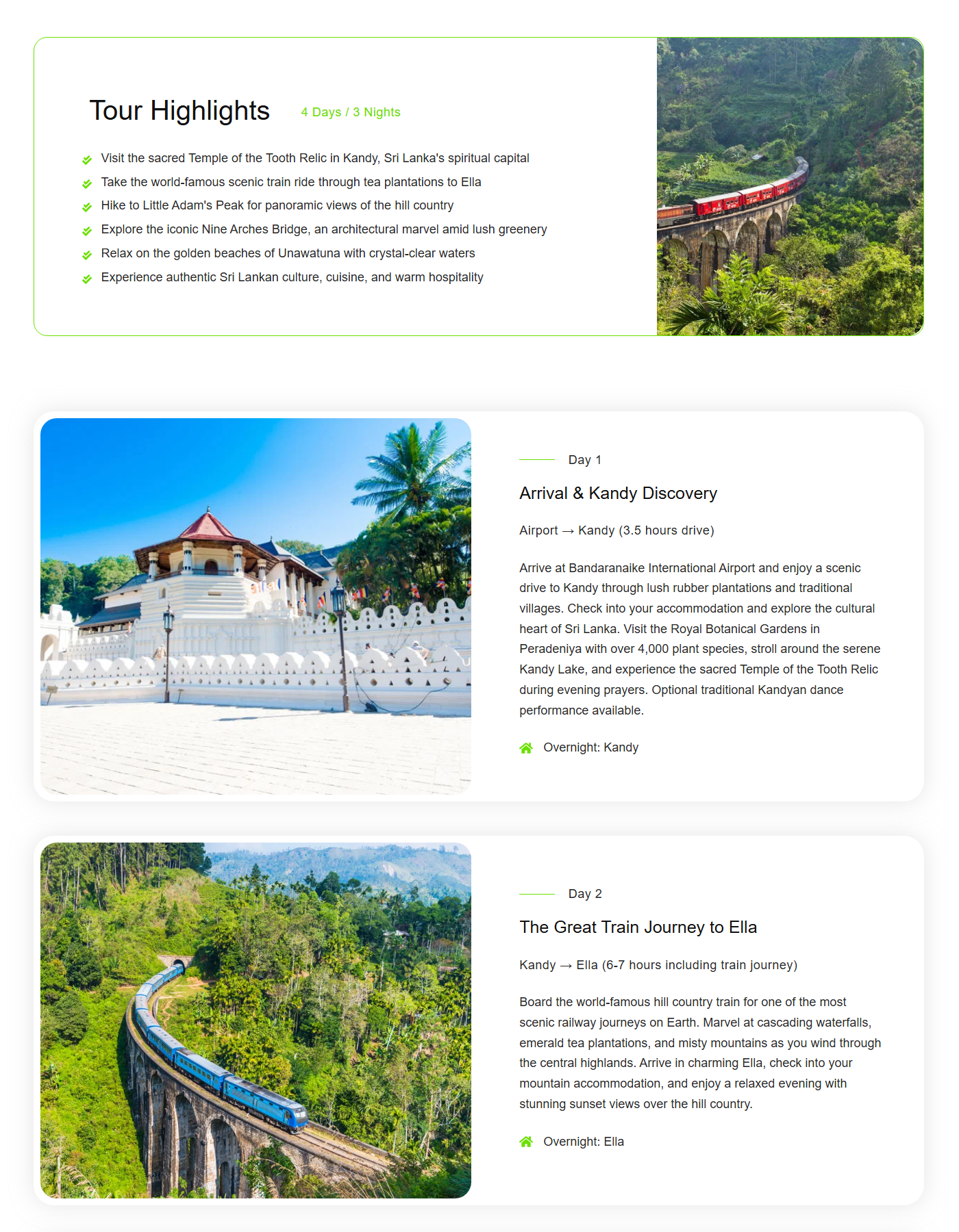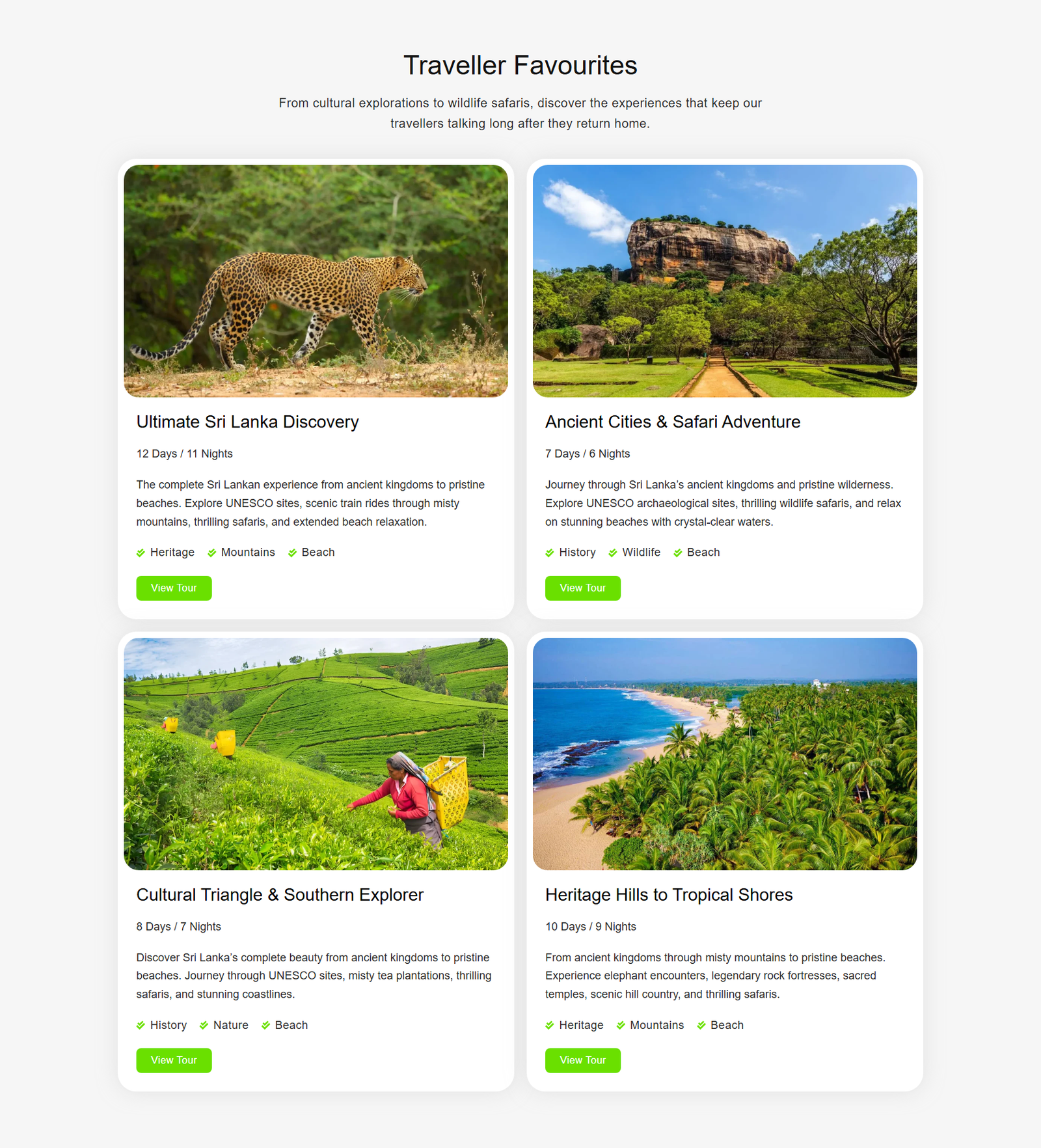 We built a warm, welcoming design with soft visuals and clear tour storytelling. Each itinerary is presented with highlights and details, helping travellers feel inspired and confident in planning their trip.