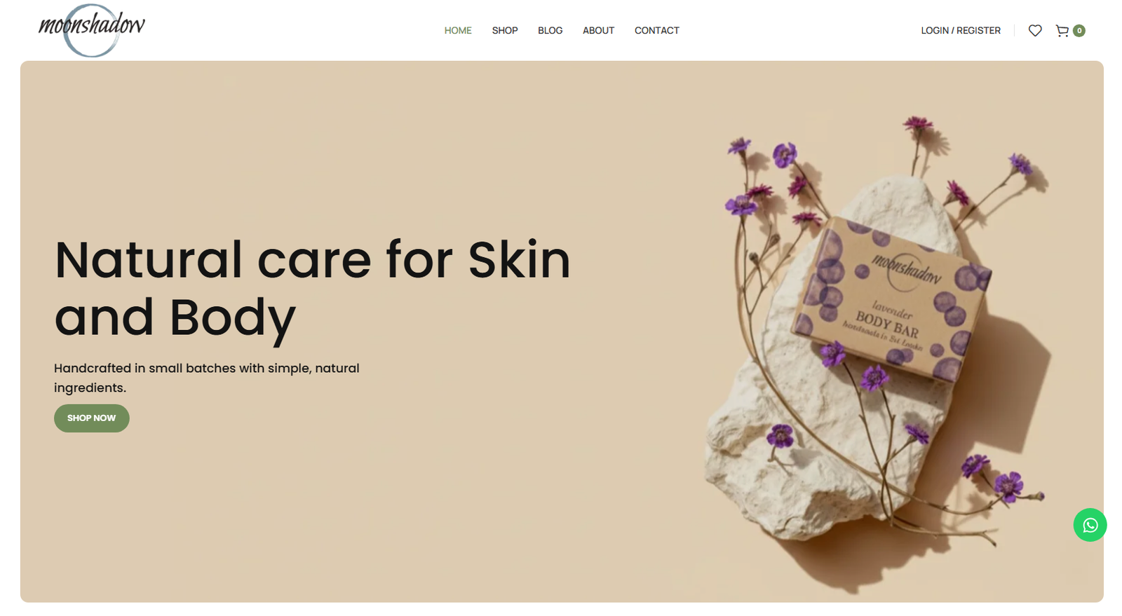 Moonshadow Natural is a Sri Lankan handmade skincare brand rooted in calmness, purity, and earth-friendly craft. They needed an online store that feels gentle and welcoming — a place where customers can explore natural products with ease.