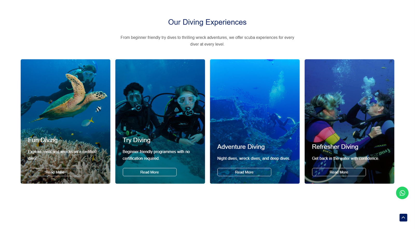 We created a clear, welcoming space with strong visuals and carefully written content. Each dive site, course, and package is explained with simplicity and flow, helping visitors feel informed and excited for their underwater adventure.
